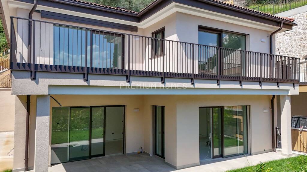 Eine großzügige 3-Zimmer-Wohnung mit zwei Schlafzimmern, zwei Bädern und weitläufigem Garten von über 100 m² sowie einer Terrasse mit 23,5 m² und wunderschönem Blick auf den Gardasee