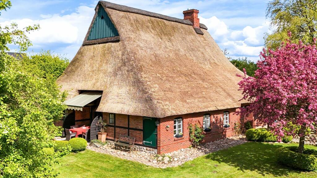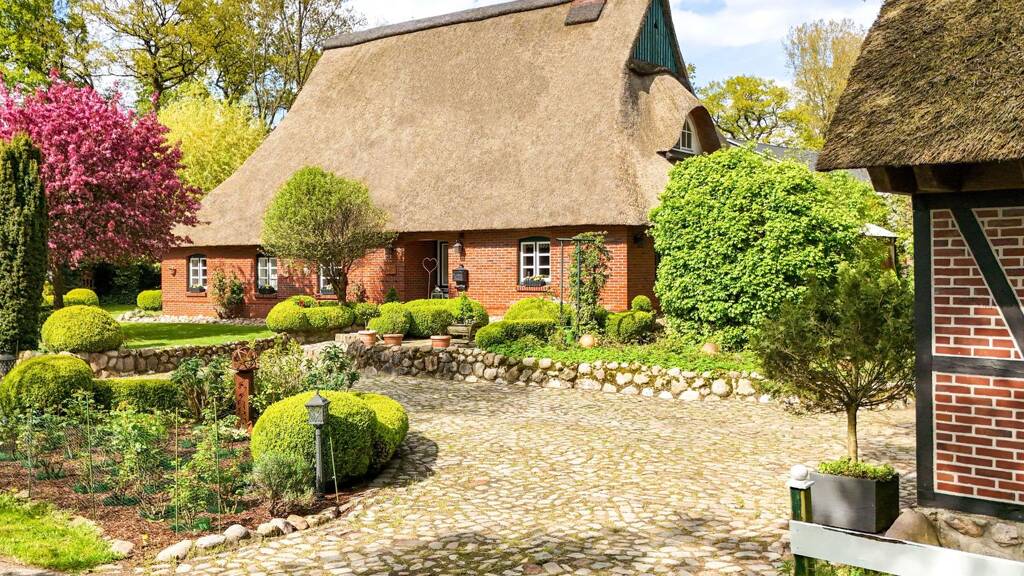 Dieses historische Reetdachanwesen aus dem Jahr 1646 befindet sich in Klein Offenseth-Sparrieshoop vor den Toren Hamburgs, mit optimaler Anbindung zur Autobahn.