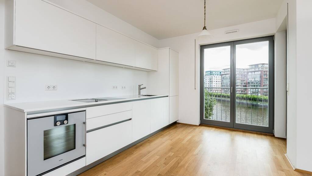 Das herrliche, weitläufige Wohnzimmer bietet einen fulminanten Wasserblick – und das in gleich zwei verschiedene Himmelsrichtungen. Vom Wohnzimmer aus geht auch der geräumige Balkon ab, der in diesem Fall einen sehr hohen Wohnwert zeigt – die Ausblicke und die Erholungsqualitäten sind außergewöhnlich. Die Wohnung hat eine optimale Ausrichtung nach Süden und Osten, sie ist lichtdurchflutet und sehr sonnig. Das Ambiente der Wohnung ist modern, anspruchsvoll und repräsentativ. Die Fußbodenheizung sorgt für angenehme Wärme. Elegantes Echtholzparkett lässt die Wohnung einladend und freundlich wirken. Die Wände sind selbstverständlich gespachtelt, sie schaffen ein elegantes Raumgefühl. Außensonnenschutz ist erfreulicherweise bereits bauseitig vorhanden. Das Badezimmer zeigt eine perfekte Aufteilung, es ist sowohl mit einer Badewanne als auch einer Dusche versehen – im Alltag ein unschätzbarer Vorteil. Ein gut erreichbares Fenster für eine effiziente Badbelüftung ist hier vorhanden und natürlich haben Sie auch aus dem Bad einen tollen Ausblick auf die Spree. Zusätzlich zum Badezimmer gibt es noch ein Gäste-WC. Sehr praktisch ist des Weiteren die Abstellkammer der Wohnung, hier gibt es auch einen Waschmaschinenanschluss.