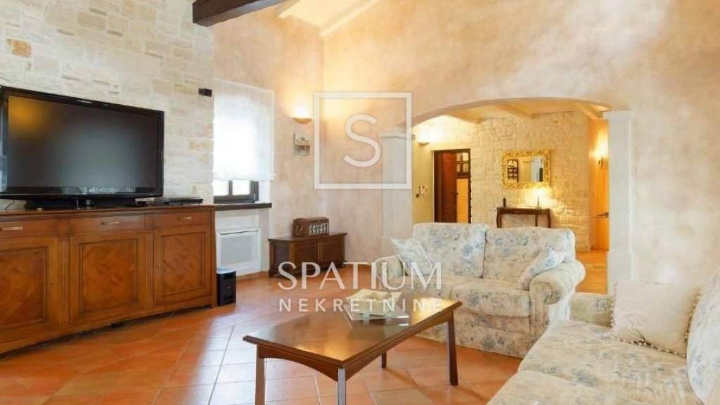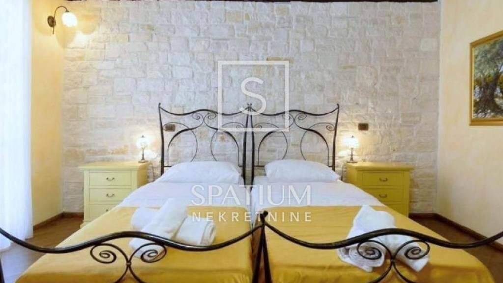 POREC, im Angebot erhielten wir eine rustikale Villa von 352 m2. Im Erdgeschoss gibt es eine Eingangshalle, ein geräumiges Wohnzimmer, eine Küche, ein Esszimmer, eine Toilette, eine Waschküche und eine geräumige überdachte Terrasse mit Außenküche und Essbereich. Es verfügt über zwei Schlafzimmer mit jeweils eigenem Bad und ein Schlafzimmer verfügt über eine türkische und eine finnische Sauna. Im Obergeschoss befinden sich zwei geräumige Schlafzimmer mit jeweils eigenem Bad und eigener Terrasse mit herrlichem Blick auf die Natur und das Meer in der Ferne. Auf einem großen, wunderschön angelegten Garten von 1038 m2 gibt es ein beheiztes Schwimmbad mit Taverne und Sauna, das durch das komplett eingezäunte Grundstück für Privatsphäre sorgt. Der Keller des Hauses wurde in eine Taverne mit großem Raum zum geselligen Beisammensein, einem Weinkeller, einer Bar, einer Hilfsküche und einem Badezimmer umgewandelt. Die Anlage wurde gemäß EU-Standards modernisiert, wobei das traditionelle istrische Äußere und die Schönheit erhalten blieben. Die Beheizung erfolgt über eine zentrale Fußbodenheizung, Ventilatorkonvektoren und einen Kamin im Wohnzimmer. Das Anwesen befindet sich in ruhiger Lage mit mehreren Parkplätzen und ist umgeben von drei Jahrhunderte alten Olivenbäumen und Eichen, in einem malerischen Dorf, 15 Minuten vom Meer, den Stränden und dem Zentrum von Porec entfernt. Dies ist eine ideale Gelegenheit für ein friedliches Familienleben sowie für die Ausübung touristischer Dienstleistungen.