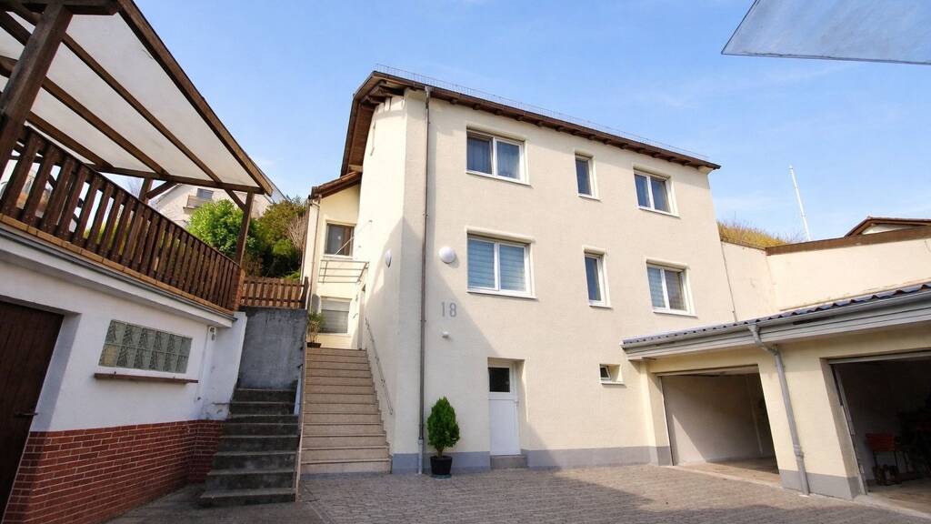 Im Haus befinden sich zwei Wohneinheiten, das Erdgeschoss mit 94 m² und das Obergeschoss mit 99 m². Jede Wohnung verfügt über eine Terrasse und einen Garagenstellplatz. Zusätzlich gibt es Lagerräume im Keller und auf dem Speicher. Die Erdgeschosswohnung hat zusätzlich einen Zugang zu einem alten Kellergewölbe.