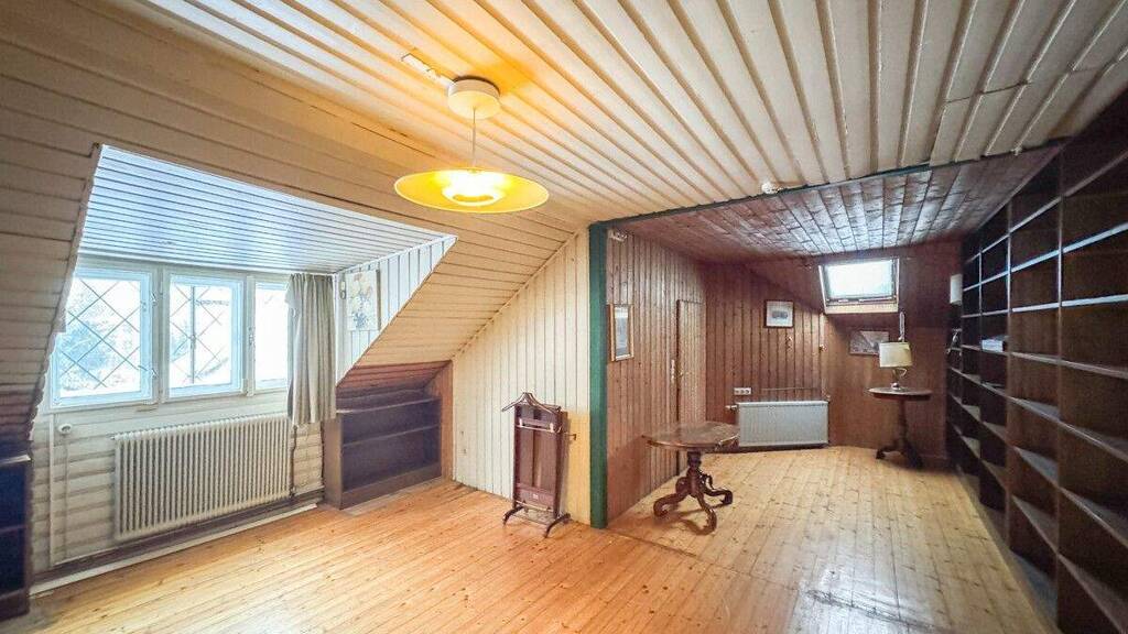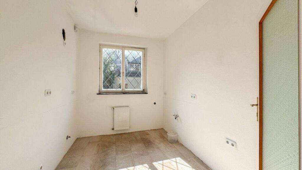 Dieses hintere Gebäude, mit einer Wohnfläche von ca. 80 m², bietet dank seines großzügigen Grundrisses, der idyllischen Gartensituation und seiner eindrucksvollen Position im Grünraum ein bemerkenswertes Entwicklungspotenzial: ein Ort, an dem Wohnträume Wirklichkeit werden können - sei es als elegante Familienvilla, repräsentativer Wohnsitz oder als exklusiver Rückzugsort. Ergänzt wird das Raumangebot durch einen Keller unterhalb des Vorderhauses, der zusätzliche Nutzfläche schafft.