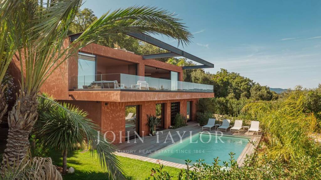 Cette propriété d'architecte exceptionnelle est nichée dans l'un des quartiers les plus prisés de La Croix-Valmer, idéalement située entre le centre du village et le golfe de Saint-Tropez.
