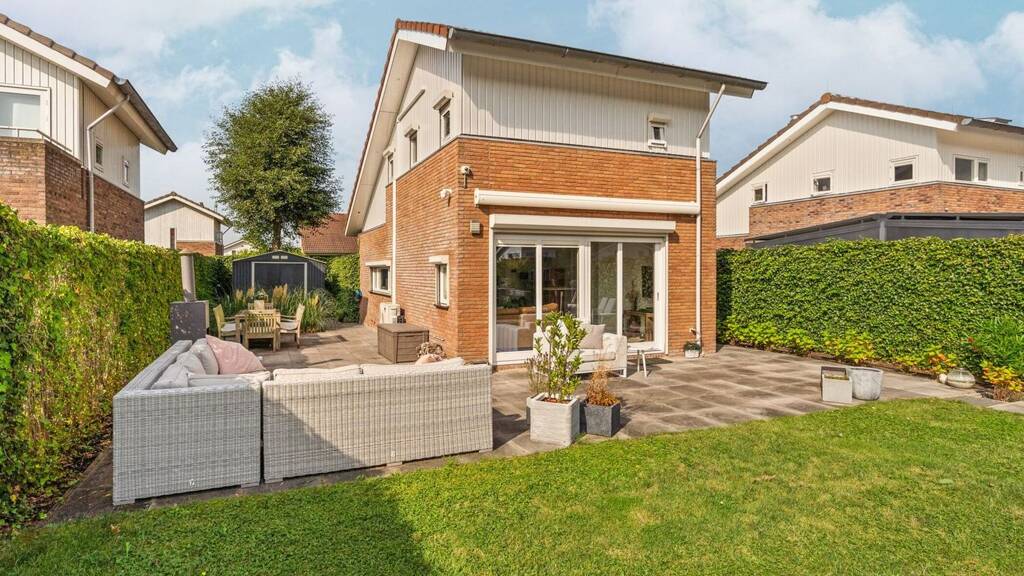 Direkt vor der Eingangstür befindet sich der Hauswirtschaftsraum mit dem Heizkessel (2018) und Platz für Waschmaschine und Trockner. Eingang an der Seite des Hauses. Flur mit modernem Zählerschrank (ausführlich). Modernisierte Toilette mit Handwaschbecken. Tür zum schönen und hellen Wohnzimmer mit einer großen Schiebetür zur Terrasse/zum Garten. An der Vorderseite befindet sich die geräumige Küche mit allen notwendigen Einbaugeräten. Auf dem Boden liegen große und helle Fliesen mit darunterliegender Fußbodenheizung.