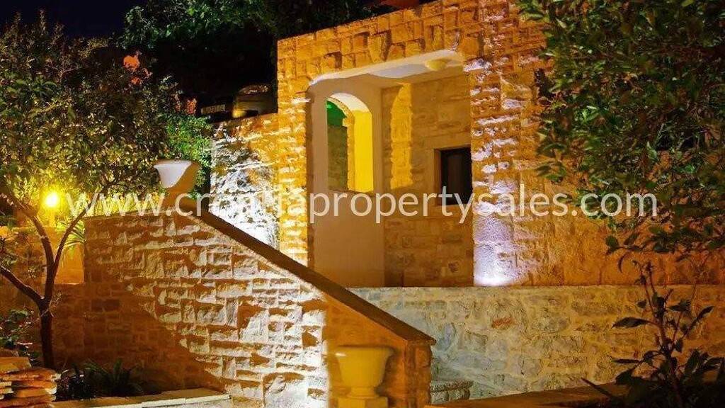 Es ist von Gärten mit mediterranen Kräutern und Oliven umgeben.