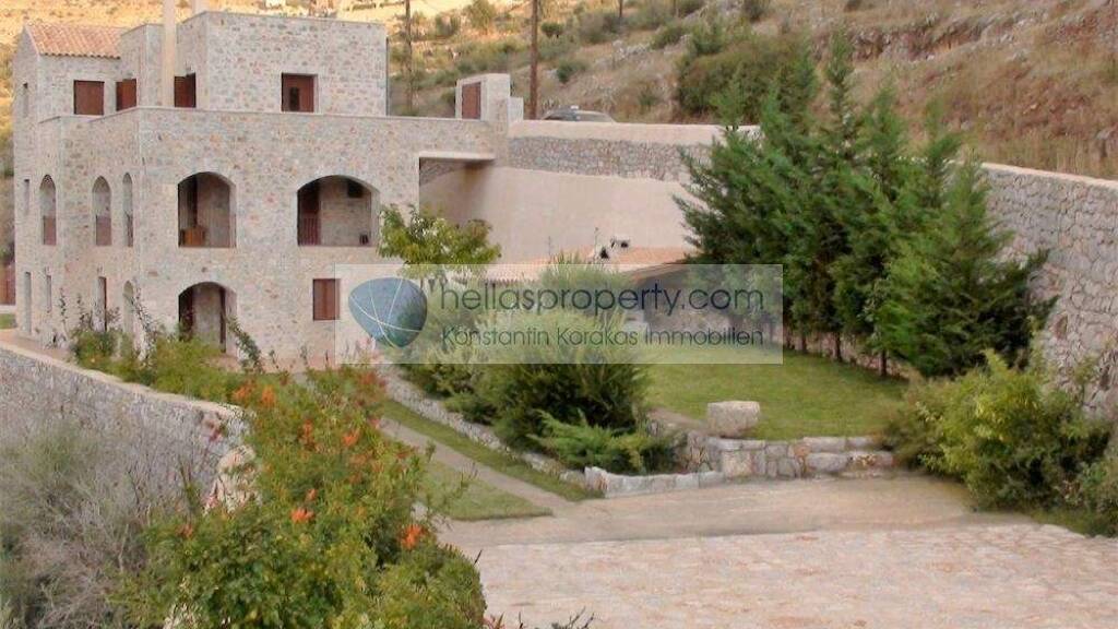 Diese imposante Steinvilla wurde 2007 erbaut und befindet sich in idyllischer Lage oberhalb des Küstenortes Itilos auf einem 1.400 m² großen Grundstück.