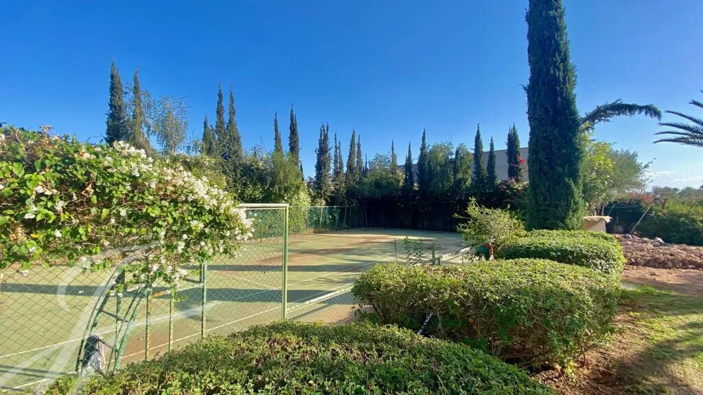 Nichée dans un parc paysagé de 6 500m2 auquel s'ajoute la jouissance d'un terrain adjacent de 4 000m2 directement sur le parcours de golf, la propriété propose une piscine de 29 mètres et un court de tennis.