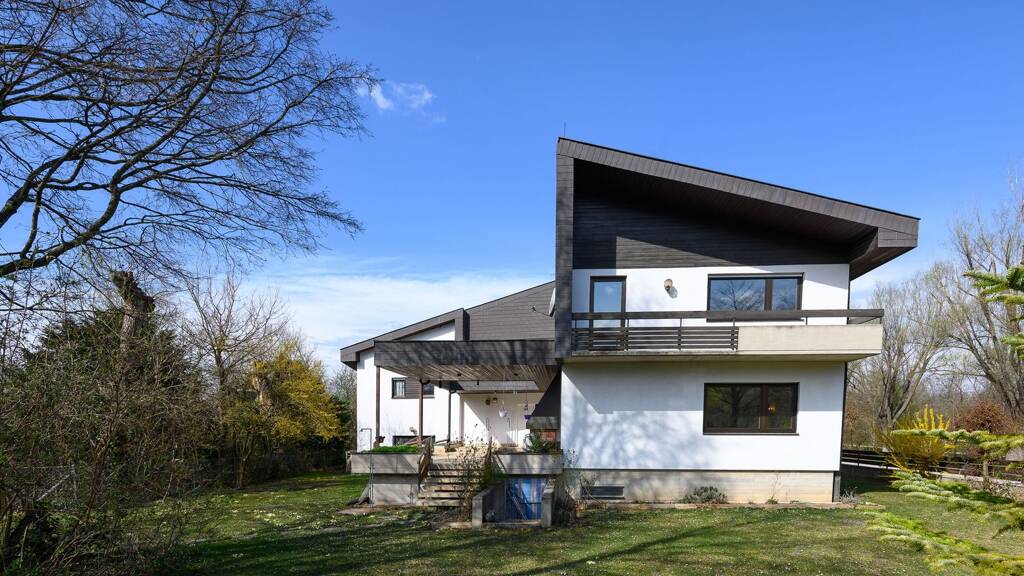 Das im Jahr 1982 errichtete Wohnhaus erstreckt sich über eine beeindruckende Wohnfläche von ca. 345 m² und bietet mit insgesamt 7 Zimmern vielfältige Nutzungsmöglichkeiten - perfekt für Familien, Wohnen und Arbeiten unter einem Dach oder individuelle Raumkonzepte.