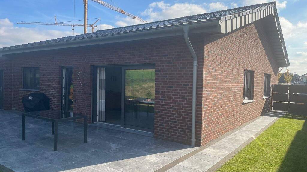 Dieser neuwertige, lichtdurchflutete Bungalow bietet alles, was Sie sich für ein komfortables und barrierefreies Leben wünschen. Auf der großzügigen 113 m² Wohnfläche erwartet Sie eine durchdachte Raumaufteilung mit drei Zimmern, u. a. ein geräumiger Wohn- und Essbereich mit integrierter offener Küche. Große Fensterfronten in allen Räumen sorgen für eine helle, einladende Atmosphäre und bringen viel Tageslicht in Ihr neues Zuhause. Angeboten wird ein Bungalow mit gehobener komfortabler Ausstattung, wo selbst das Gäste-WC über eine 1m breite Türe verfügt, damit diese auch barrierefrei zugänglich ist. Der direkte Zugang vom Hauswirtschaftsraum in die mehr als großzügige Doppelgarage erhöht den Wohnkomfort zusätzlich und sorgt für eine maximale Alltagserleichterung. Das moderne Badezimmer sowie das separate Gäste-WC lassen keine Wünsche offen. Ein flexibles Gästezimmer, welches auch als Büro genutzt werden kann, bietet weitere zusätzliche Gestaltungs- bzw. Nutzungsmöglichkeiten. Eine Kombination aus Büro- und Gästezimmer wäre auch denkbar. Genießen Sie entspannte Stunden auf der Terrasse oder in dem zum Objekt passenden, angelegten und nicht zu großen Garten. Zusätzlich zum Hauswirtschaftsraum und weiteren Abstellmöglichkeiten in der Doppelgarage bietet der Dachboden über eine Auszugstreppe weiteren Stauraum an. Ausgestattet mit einer Fußbodenheizung, einer Luft-Wasser-Wärmepumpe sowie einer Photovoltaikanlage nebst Speicher erfüllt das Objekt in hohem Maße den aktuellen energetischen Anforderungen. Bedenken Sie auch die komplette Fertigstellung der Immobilie einschließlich der gesamten hochwertigen Einfriedung sowie der Küche. Lassen Sie sich die Gelegenheit nicht entgehen und vereinbaren Sie noch heute einen Besichtigungstermin.