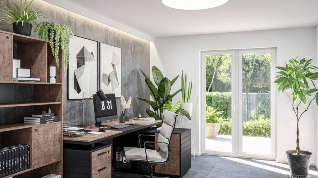 Das Aktionshaus Stellar überzeugt durch außergewöhnliche Architekturelemente, die dem Haus eine ganz besondere Ausstrahlung verleihen. Zwei markante Anbauelemente erweitern den Wohnraum auf beeindruckende Weise, beide elegant abgerundet mit einem modernen Flachdach. Das Panoramafenster erstreckt sich über die gesamte Front und schafft einen atemberaubenden Ausblick. Im Dachgeschoss erwartet Sie ein großzügiger offener Flur, ein Elternschlafzimmer mit exklusiver Ankleide sowie zwei Kinderzimmer, die vielfältige Gestaltungsmöglichkeiten bieten.