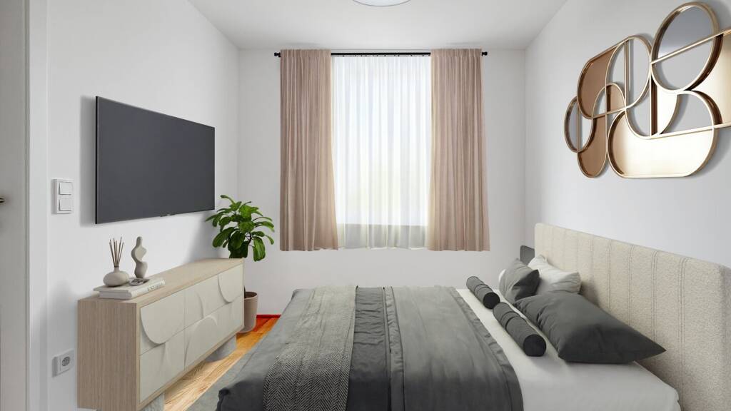 Das Wohngebäude umfasst 31 modern gestaltete Wohneinheiten mit Größen zwischen 31 m² und 72 m², die überwiegend mit großzügigen Außenflächen wie Balkonen oder Terrassen ausgestattet sind. Die hochwertigen Materialien, darunter Eichenparkettböden und dreifach-isolierverglaste Kunststofffenster mit elektrisch bedienbarem Sonnenschutz, garantieren ein angenehmes Wohnklima. Ergänzt wird dies durch zeitgemäße Sicherheitsstandards wie Rauchmelder in allen Aufenthaltsräumen (außer in Küchen) und Brandschutzwohnungseingangstüren.