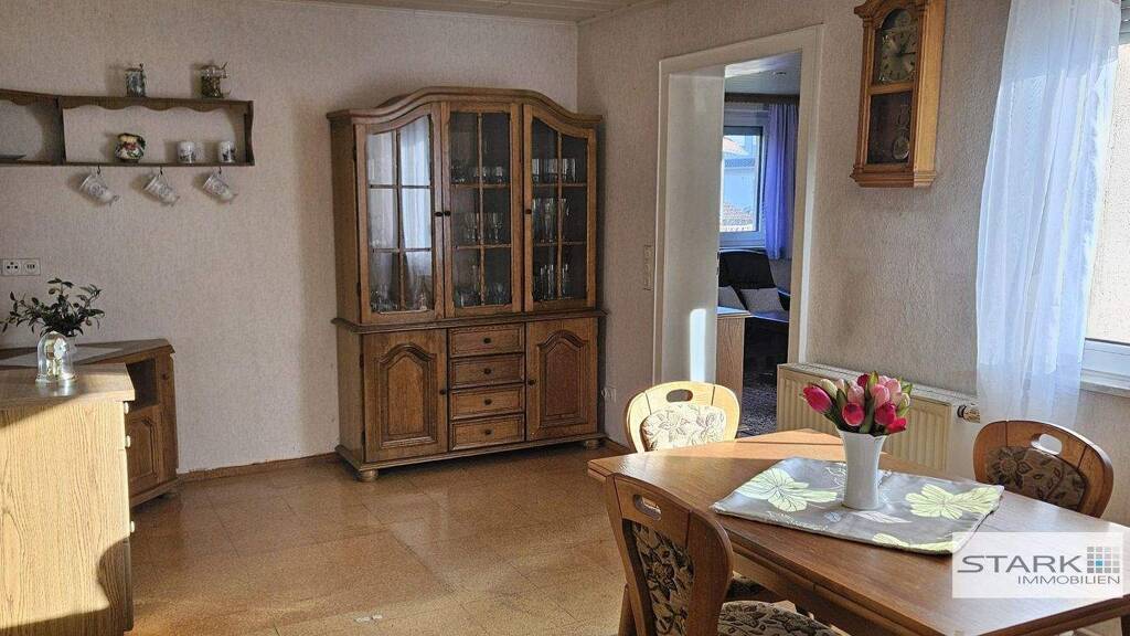 Das Wohnhaus wurde 1938 als typisch fränkisches Siedlungshaus mit Satteldach errichtet und im Jahr 1964 um einen geräumigen Anbau mit Werkstatt und zusätzlichen Zimmern und Gauben erweitert. Es befindet sich seit der Erbauung im Familienbesitz und wird nun zum ersten Mal zum Verkauf angeboten.