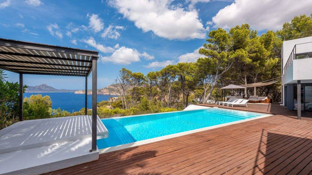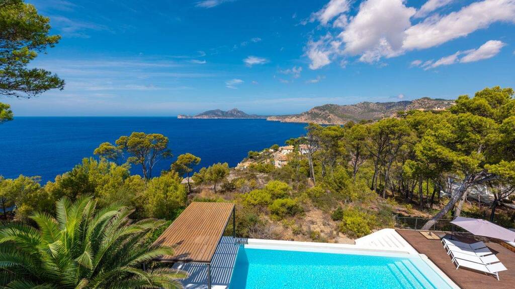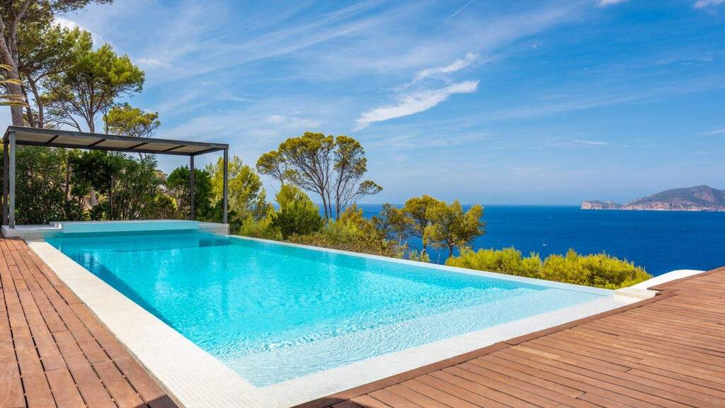 Diese außergewöhnliche Villa thront in einer der exklusivsten Lagen von Port d'Andratx und öffnet den Blick auf ein endloses Panorama über das offene Meer. Hier erleben Sie magische Sonnenuntergänge, die jeden Abend zu einem unvergesslichen Schauspiel machen - eingebettet in absolute Ruhe und vollkommene Privatsphäre.