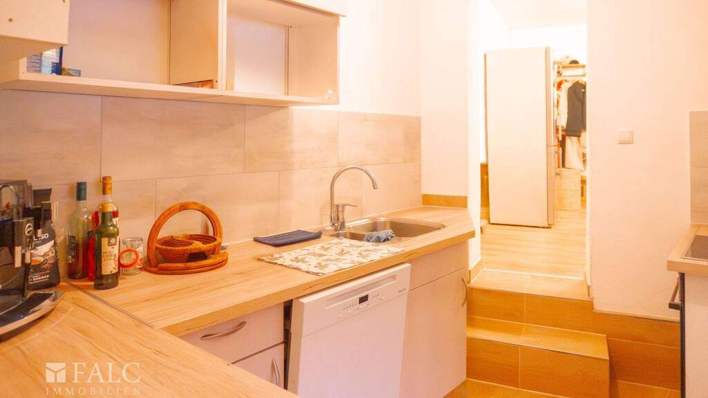 Die Küche im Erdgeschoss wurde im Jahr 2025 umfassend saniert. Im Zuge dieser Sanierung wurde eine gebrauchte, jedoch sehr gut erhaltene und gepflegte Einbauküche installiert.