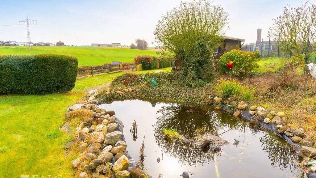 Ein besonderes Highlight dieser Immobilie ist der weitläufige Gartenbereich mit zwei idyllischen Teichen, der eine einzigartige Atmosphäre schafft und vielfältige Gestaltungsmöglichkeiten bietet. Ergänzt wird der Außenbereich durch einen großen, überdachten Innenhof, der ideal für gesellige Stunden genutzt werden kann.