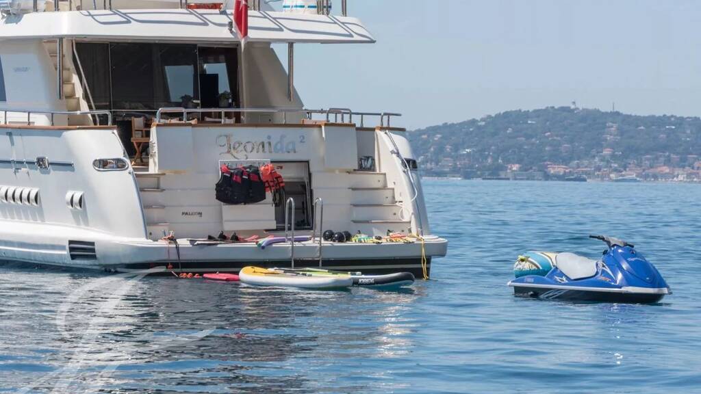 Ce Falcon 86 es idéal tant pour des dîners formels à l'intérieur que des repas en plein air sur le pont arrière et sur le flybridge: un superbe endroit pour passer du temps à profiter des vues panoramiques sur la Méditerranée. Avec des chaises longues sur le pont supérieur, LEONIDA offre beaucoup d'espace pour permettre aux clients de se détendre et de profiter du soleil.