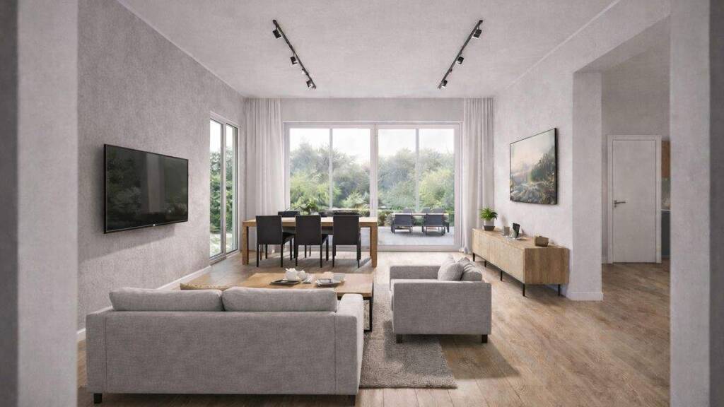 Der offene Wohn- und Essbereich bildet den Mittelpunkt des Hauses. Insgesamt stehen drei Schlafzimmer sowie ein zusätzliches Gästezimmer oder Homeoffice zur Verfügung. Ein angrenzender Hausanschlussraum bietet praktische Abstell- und Vorratsmöglichkeiten.