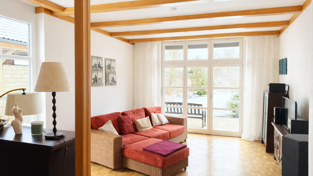 Herzlich willkommen in Westerdeichstrich in diesem charmanten Reihenendhaus mit einer Wohnfläche von ca. 99 m², die sich auf drei Ebenen verteilt. Es ist Teil eines 1983 erbauten Ensembles, das aus insgesamt neun Wohneinheiten besteht. Mit drei Zimmern, einer funktional eingerichteten Küche, dem großzügigen Wohn- und Essbereich an der Terrasse und einem Wannenbad bringt es mit, was ein gemütliches und komfortables Zuhause ausmacht. Über einen Windfang gelangen Sie unmittelbar in den offenen Essbereich gegenüber der Küche. Ihr Blick wird sich von hier unweigerlich auf den zwei Stufen tiefer gelegenen, dank eines bodentiefen Seitenfensters lichtdurchfluteten Wohnbereich richten. Der Kaminofen, die sich anschließende Terrasse sowie der Blick auf das großzügige gemeinschaftlich genutzte Grundstück machen diesen Raum zum Highlight. Eine frei tragende, gewendelte Holztreppe führt vom Erdgeschoss zunächst ins Obergeschoss. Auf dieser Ebene befinden sich das Hauptschlafzimmer und das Wannenbad sowie eine Lounge unterhalb der Galerie des Dachgeschosses. Die Ebene direkt unter dem Dach beherbergt ein weiteres Zimmer sowie die besagte Galerie, die den Blick in die Lounge ermöglicht und die Verbindung zwischen beiden Stockwerken schafft. Beide oberen Etagen erlauben den freien Blick über grüne Felder in Richtung Nordsee. Die Elektroheizung sorgt zu jeder Jahreszeit für angenehme Temperaturen im gesamten Haus. Der Parkplatz direkt vor der Haustür sowie ein Fahrradschuppen komplettieren dieses Immobilienangebot. Mit diesem Reihenhaus in Westerdeichstrich erwerben Sie entweder ein gemütliches Zuhause in ruhiger Lage, einen Zweitwohnsitz für Rückzugsmomente oder die Möglichkeit, es an Feriengäste zu vermieten. Direkt vor Ihrer Haustür beginnt ein Weg, der Sie in die Natur führt. In ca. 10 Gehminuten erreichen Sie die Nordsee und die Badestelle des Ortes. Die Voraussetzungen, sich hier eine Oase der Ruhe zu schaffen, sind nahezu perfekt. Vereinbaren Sie Ihren Besichtigungstermin mit uns. Wir präsentieren Ihnen das Potenzial dieses Reihenendhauses gerne.