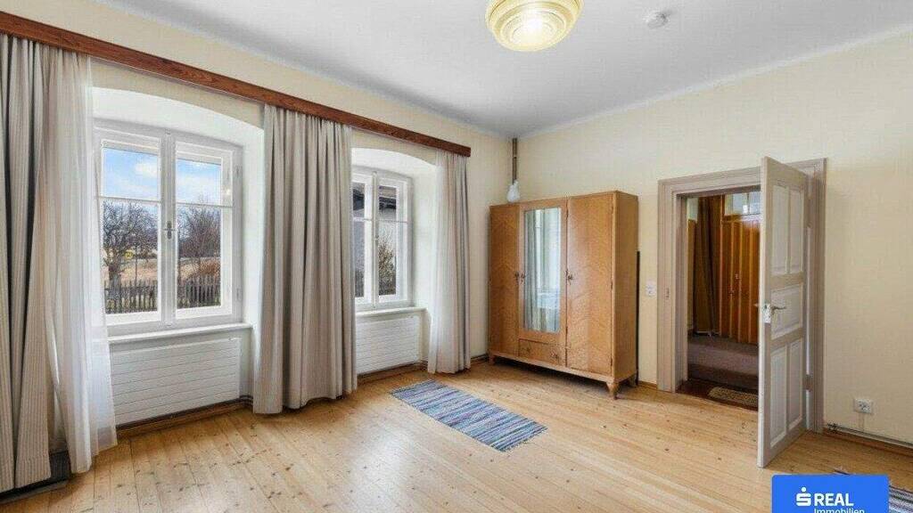 Im Inneren öffnen sich großzügige Räume mit beinahe drei Metern Raumhöhe, lichtdurchflutet und von wohltuender Klarheit. Erd- und Obergeschoss sind als eigenständige Wohnebenen angelegt, ergänzt durch eine ausgebaute Mansarde, die besonders in den Sommermonaten ihren eigenen Charme entfaltet, sowie durch Keller- und Nebenräume. Die technische Infrastruktur wurde in den späten 1990er-Jahren modernisiert, inklusive Erneuerung der Elektrik und Einbau einer Zentralheizung - zeitgemäßer Komfort, zurückhaltend integriert.