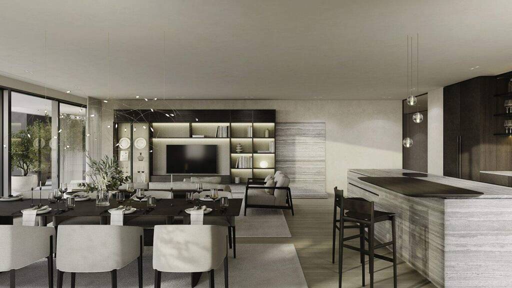 Im Zusammenspiel klarer Linien und präzise gesetzter Details entsteht die architektonische Qualität von THE SUPERIOR. Jede Entscheidung folgt einem übergeordneten Prinzip: Reduktion, Dauerhaftigkeit und Materialität. Die Innenräume überzeugen durch sorgfältig ausgewählte Oberflächen, die Ruhe ausstrahlen und zugleich Tiefe entwickeln. Eichenparkett bringt natürliche Wärme in die Räume, während großformatige Verglasungen Licht und Weitblick selbstverständlich integrieren. Auch in den Bädern setzt sich diese Klarheit fort. Hochwertiges Feinsteinzeug trifft auf fein ausgeführte Sanitärobjekte und schafft eine Atmosphäre, die zurückhaltend und zugleich anspruchsvoll wirkt. Technik versteht sich hier als diskrete Unterstützung. Split-Kühlgeräte sorgen für angenehme Temperaturen, ohne in Erscheinung zu treten. Elektrisch gesteuerte Beschattungselemente regulieren Licht und Atmosphäre im Hintergrund, während die Video-Gegensprechanlage Sicherheit und Privatsphäre gewährleistet.