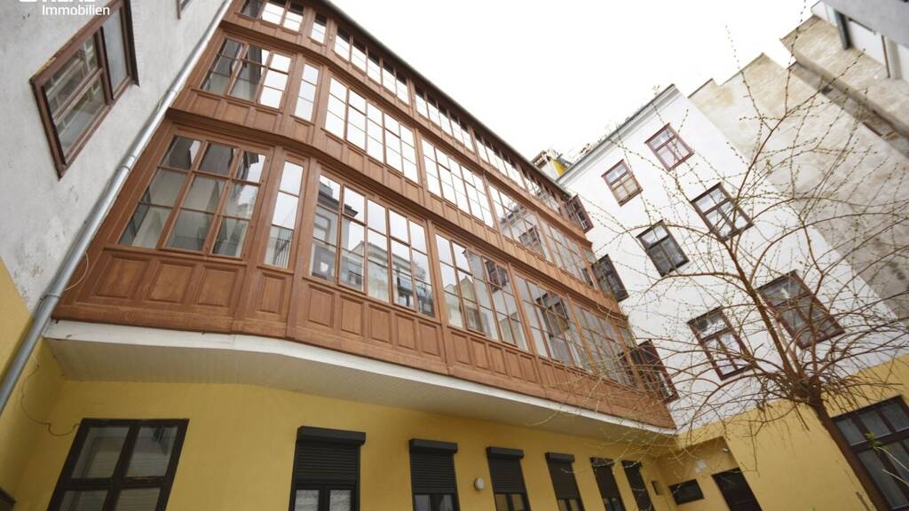 * Zugang über eine exklusive beeindruckende Pawlatsche in den ruhigen Innenhof ausgerichtet * 2 geräumige Schlafzimmer jeweils ca. 20 m² * großzügiges Wohnzimmer mit offener Einbauküche ca. 25 m² * kleines Badezimmer mit Dusche * separate Toilette * Vorräume, Abstellraum
