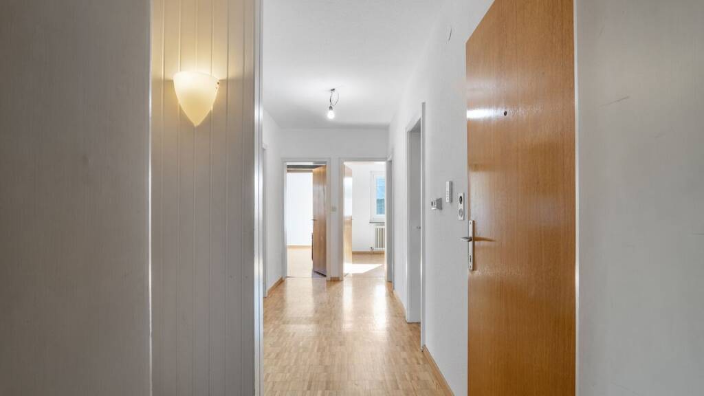 Die Wohnung verfügt über eine durchdachte Raumaufteilung mit zentral gelegenem Eingangsbereich bzw. Flur, von dem aus alle Räume separat zugänglich sind. Der Wohn- und Essbereich ist hell und großzügig gestaltet, die Küche liegt separat. Drei Schlafzimmer bieten vielseitige Nutzungsmöglichkeiten - etwa als Schlaf-, Arbeits- oder Kinderzimmer. Das Badezimmer ist mit einer Badewanne sowie einem Waschmaschinenanschluss ausgestattet, das WC befindet sich in einem eigenen Raum. Besonders hervorzuheben ist die rund 19,4m² große, verglaste Loggia mit freiem Blick ins Grüne - dank des angrenzenden Spielplatzes - ein echtes Plus für Licht und Wohnqualität. Ein alternativer Grundriss liegt ebenfalls vor und ermöglicht eine flexible Raumgestaltung sowie unterschiedliche Ausstattungsvarianten.