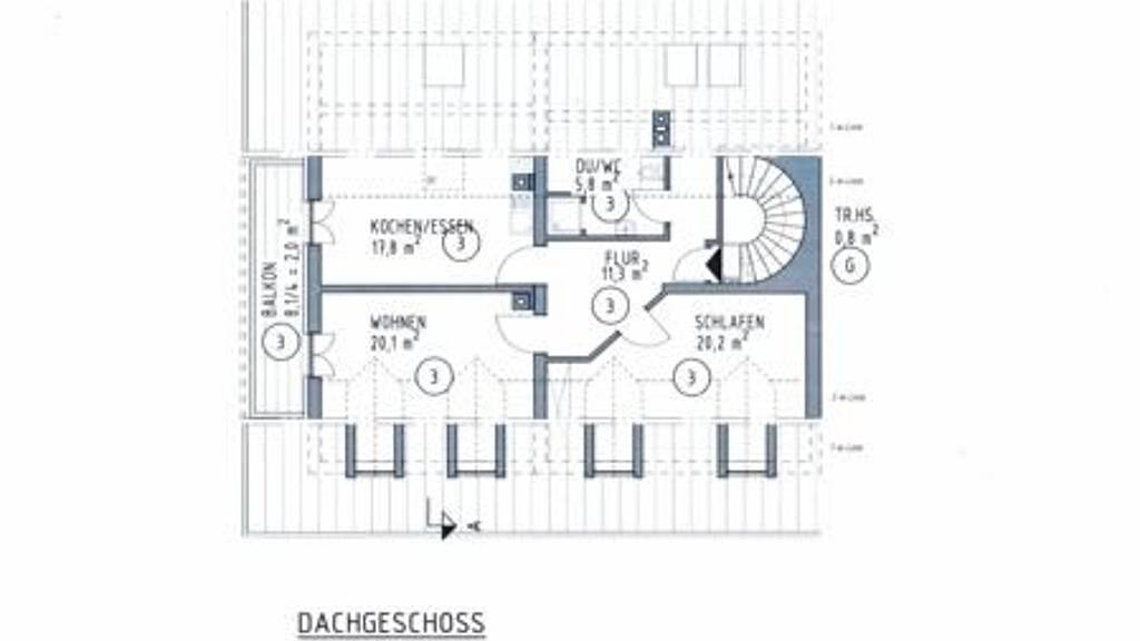 Die 2 Zimmerdachgeschosswohnung verfügt über einen nach Süden ausgerichteten Wohnraum, sowie einen nach Süden ausgerichteten Schlafraum und eine große Küche, sowie ein Bad. Sowohl von der Küche, wie auch vom Wohnzimmer gelangt man auf den Westbalkon