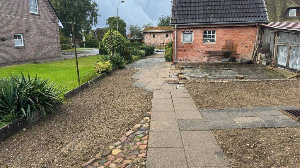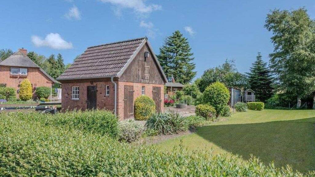 Schönes Baugrundstück mit Schuppen (ehemaliger Schweinestall) 438m2 innerorts ohne Bebauungsplan, somit richtet sich die Bebauung nach der Nachbarschaftsbebauung, wobei es dabei um die Größe und Geschoßanzahl geht, die Dachform, Dacheindeckung, Aussenfassade ist hier frei wählbar. In der direkten Umgebung finden sich Reetdachhäuser und Doppelhäuser in ein und zwei geschossiger Bauweise.