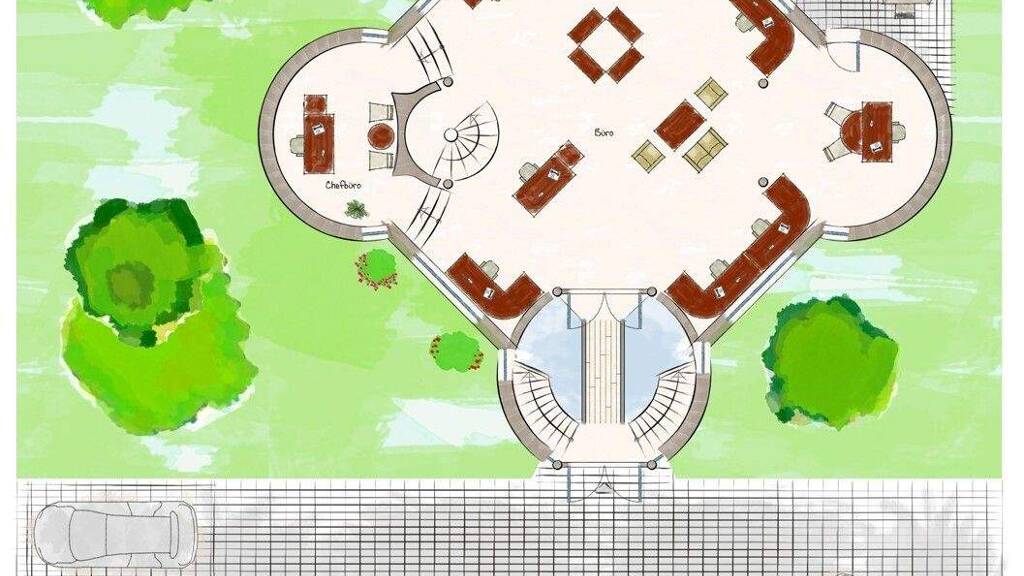 Im Erdgeschoß befinden sich die repräsentativen Büroflächen, in denen ausschließlich hochwertige handgeschreinerte Einbaumöbel aus verschiedenen Edelhölzern verbaut wurden. Der Eingangsbereich empfängt Sie mit einem Teich, über dem ein Steg gespannt ist. Ohne Zweifel beeindruckend für Ihre Gäste und Ihre Kunden.