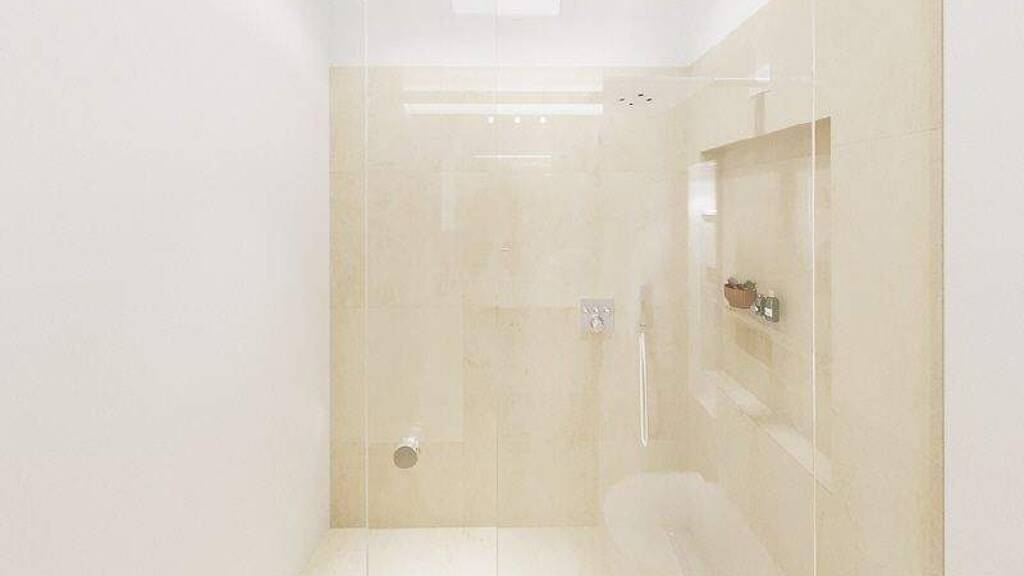 - Fußbodenbeläge: Vollholzparkett (Buche), Fliesen