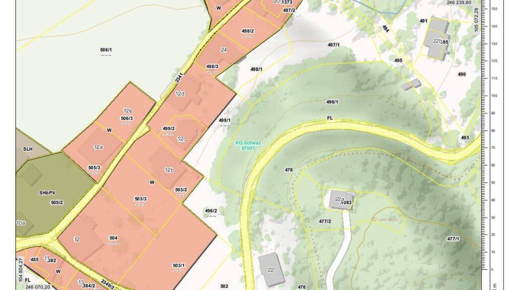 Es gilt hier aber von der Stadt Schwaz eine max. BMD von 2,5, eingeschränkt auf max. 2 Obergeschoße.