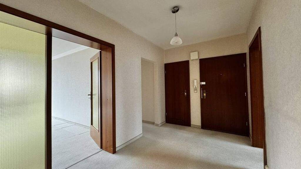 Über den großzügigen Eingangsbereich sind alle Räume, einschließlich Küche, Vollbad und Gäste-WC, bequem erreichbar. Die gesamte Wohnung befindet sich in einem renovierungsbedürftigen Zustand. Der großzügige Wohnbereich bietet Zugang zum Balkon, der in südlicher Ausrichtung liegt und für eine angenehme Belichtung sorgt.