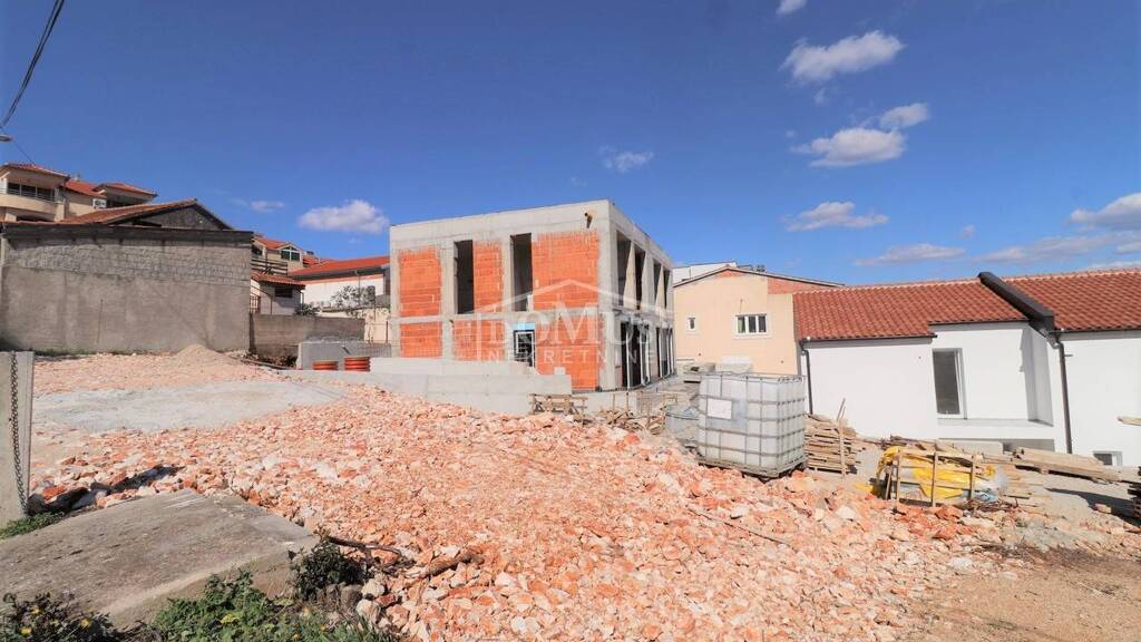 In ruhiger Umgebung befindet sich ein Baugrundstück von 318m2, gemäß dem Stadtplan der Gemeinde Tisno, befindet sich das Grundstück in der Zone M1 - bebautes Gebiet - gemischt, überwiegend für die Wohnnutzung. Für das Grundstück wurde ein Projekt ausgearbeitet das den Bau eines Einfamilienhauses, Erdgeschoss + 1 Stock, mit zwei Wohneinheiten, Nettofläche von 146,56 m² (Bruttofläche von 192,19 m²) ermöglicht, für das bereits auch eine Baugenehmigung vorliegt. Das Grundstück hat eine regelmäßige Form mit einer Länge entlang der Zufahrtsstraße von ca. 21 m und einer Breite von ca. 17 m. Die komplette Infrastruktur liegt direkt am Grundstück. Das Meer ist 280 m, der Strand 350 m und das Zentrum 800 m entfernt. Es besteht auch die Möglichkeit des Verkaufs von Wohnungen als separate Wohneinheiten zum Preis von €/m2.