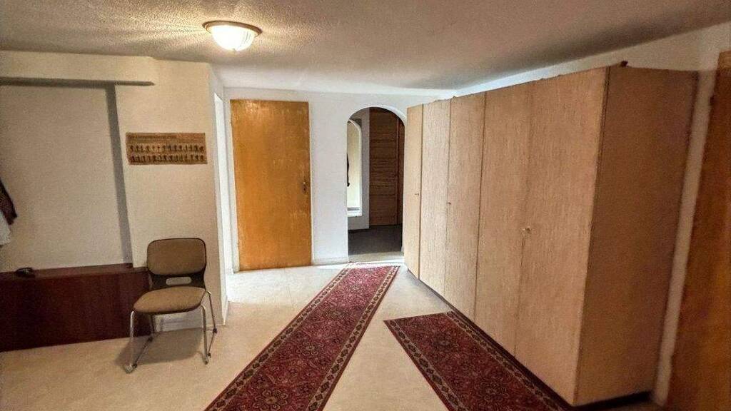 Teilweise sind die Kellerräume mit Heizkörpern und Fenstern nach Süden ausgestattet und somit auch zu Wohnzwecken nutzbar, z.B. als Hobbyraum oder auch als Gästezimmer. Ein Duschbad gibt es im Keller ebenfalls, genauso wie eine weitere Küche mit Essplatz. Des weiteren werden die Räume als Vorratsräume mit Regalen und als Werkstatt genutzt. Auch die Ölheizung ist im Keller untergebracht. Das Heizöl lagert in einem 5000 l Erdtank.