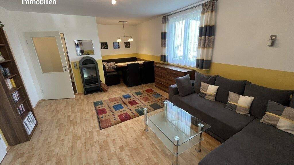 Die Wohnung mit Balkon ist praktisch aufgeteilt: Ein separates Schlafzimmer, ein helles Wohnzimmer mit Essecke und Schwedenofen, eine eigene Küche, ein Bad mit Dusche und WC sowie ein Vorraum für Jacke, Rucksack & Co. Die Süd-West-Ausrichtung sorgt für viele Sonnenstunden, das Kellerabteil für zusätzlichen Stauraum. Allgemeine Parkplätze sind am Grundstück vorhanden.