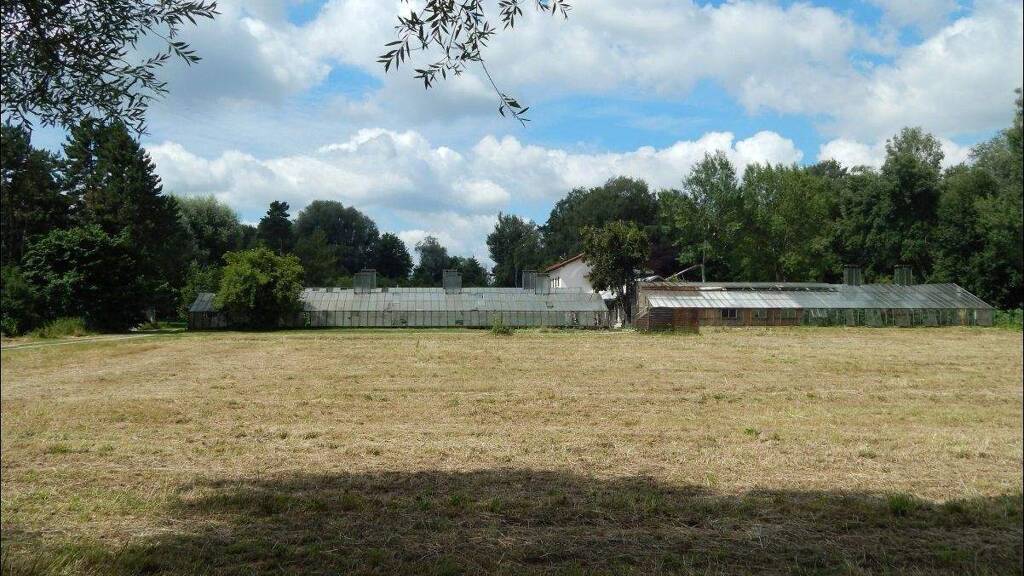 Das Grundstück misst knapp 1,5 ha und ist von dreieckiger Form. Eine geteerte Straße führt vom Olchinger See kommend zur westlichen Grundstückgrenze. Gleich hinter dem Tor befindet sich das Wirtschaftshaus mit Werkstatt. Beides wurde 2016 in massiver Ziegelbauweise gebaut und ist noch im Rohbauzustand. Ungefähr mittig des Grundstücks stehen 4 Glasgewächshäuser mit einer Gesamtgrundfläche von ca. 1.150 m² sowie das Betreiber-Wohnhaus mit ca. 1.500 m² Gartenfläche. Östlich der Gewächshäuser steht eine circa 8.500 m² große Fläche zum Bewirtschaften zur Verfügung. Hier befindet sich eine weitere Zufahrt nach Osten, Richtung Graßlfing.
