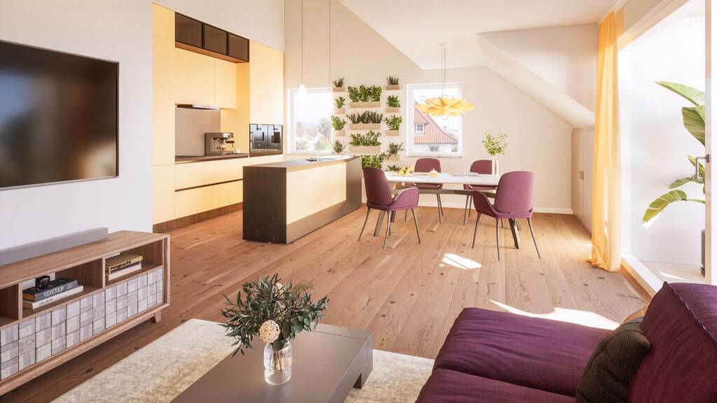 Eine ganz besondere Wohnung mit idealer Ausrichtung und Weitblick. Die hohen Räume und die vielen Fenster geben der Wohnung Licht und Wohnlichkeit. Auf 3,5 Zimmer ist es dem Architekt sehr gut gelungen alles in klaren Linien und praktisch zu planen. Der Wohnbereich ist mit einer offenen Küche und dem Balkon ein großzügiger Lebensmittelpunkt, der zum Verweilen einlädt.