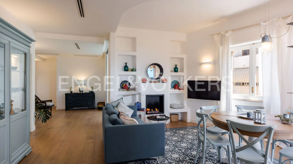 Die Wohnung ist mit einer ausgeklügelten Klimaanlage ausgestattet, die für eine gleichmäßige Verteilung der kalten und warmen Luft in allen Räumen sorgt und gleichzeitig die moderne und elegante Ästhetik der Einrichtung bewahrt. Um in den Wintermonaten eine besonders warme und gemütliche Atmosphäre zu schaffen, gibt es einen modernen Bioethanol-Kamin.