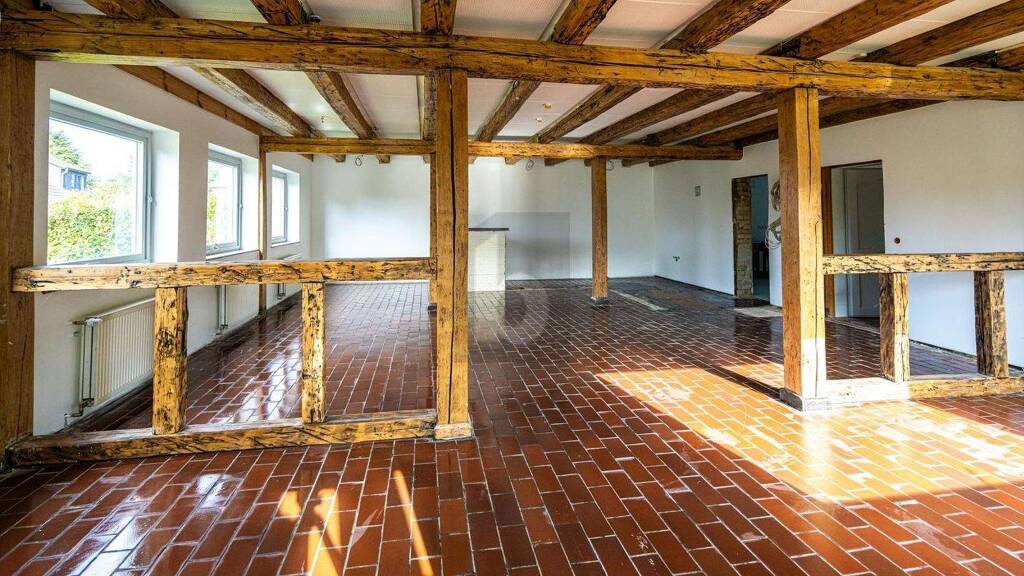 Diese Bürofläche in ruhiger, ostseenaher Lage besticht durch ihren historischen Charme mit einer beeindruckenden Balkendecke aus der ursprünglichen Stallnutzung. Die offene Raumgestaltung bietet viel Potenzial für ein repräsentatives Büro, Praxisräume oder kreative Konzepte. Ein moderner Eingangsbereich und zwei separate Toiletten sorgen für zeitgemäßen Komfort. Parkplätze können nach Bedarf angemietet werden, und die laufende Renovierung bietet Spielraum für individuelle Mitgestaltung.