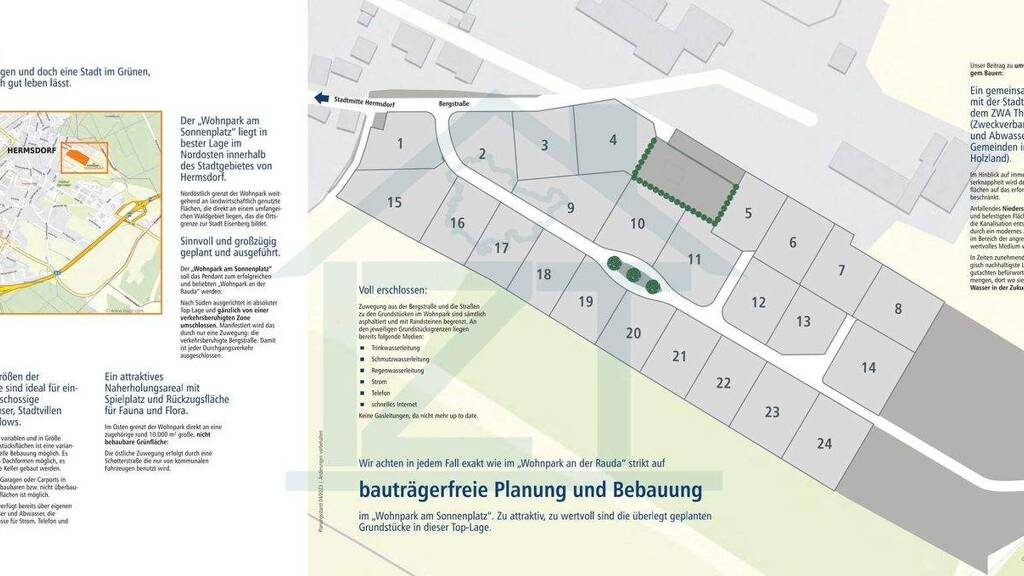 Wählen Sie aus flexiblen Größen von 250 m² bis 900 m² das ideale Fleckchen Erde für Ihre Pläne. Die Lage ist besonders für Pendler hervorragend: Durch die sehr gute Verkehrsanbindung an die Autobahnen A4 und A9 erreichen Sie die Autobahnauffahrt Hermsdorf in kürzester Zeit und sind von dort aus in nur ca. 15-20 Fahrminuten in Jena-Lobeda.