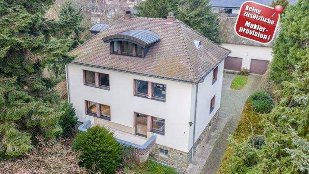 - sieben Zimmer - großes Wohn-Esszimmer mit Kachelofen - zwei Badezimmer - Gäste-WC - Terrasse - zwei Balkone - unterkellert - Garage und Hof - parkähnlicher Garten - Gartenhaus - keine zusätzliche Maklerprovision
