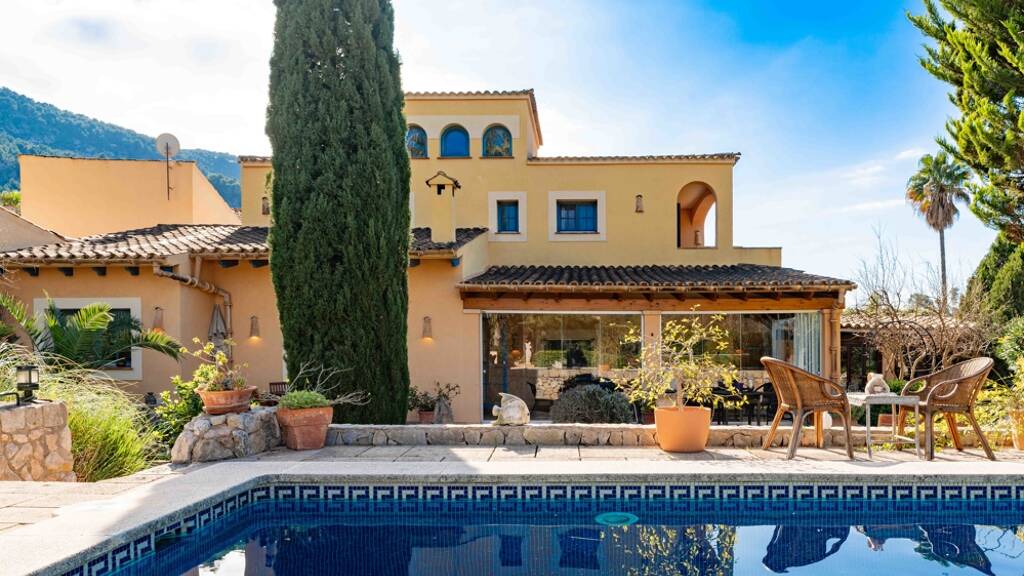 Diese charmante Finca liegt am Ortsrand von Andratx in ruhiger Wohnlage mit herrlichem Blick auf die umliegenden Berge. Im Erdgeschoss befinden sich das großzügige Wohn- und Esszimmer mit Kamin und offener Küche, ein großer Wintergarten, das Hauptschlafzimmer mit Bad en-suite, ein Gäste-WC sowie ein Patio und eine gemütliche Bodega. Weiteren Platz bieten im Obergeschoss 2 Schlafzimmer mit jeweils Bad en-suite und eigenem Balkon. Das gepflegte Grundstück ist nahezu uneinsehbar, besticht durch mediterrane Pflanzenvielfalt und der große Pool sorgt für Urlausfeeling pur. Ganzjährig ist die Finca durch zentrale Ölheizung, Kamin und Klimaanlagen kalt/warm wohl temperiert und zusätzlichen Platz bietet das Gäste-Studio mit Duschbad und kleiner Küche. Das Haus verfügt über eine aktuelle Bewohnbarkeitsbescheinigung und ist kurzfristig verfügbar.