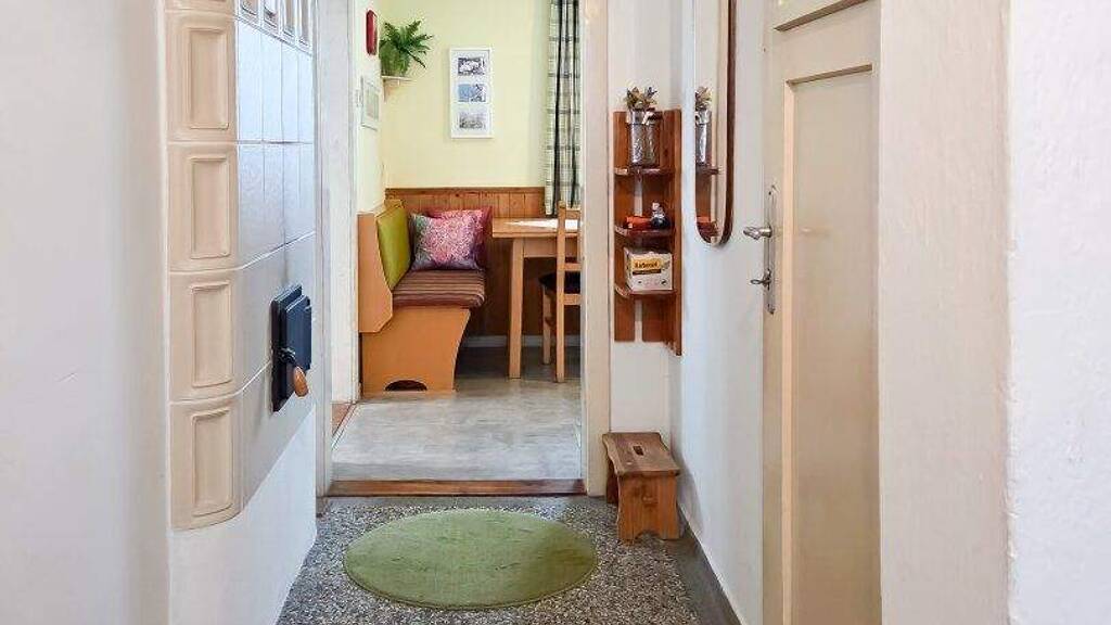* Vorraum * Küche * Wohnzimmer mit Kachelofen und Balkon * 1 Zimmer * Badezimmer mit Badewanne * WC