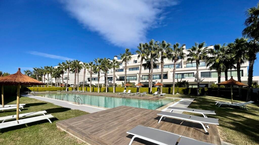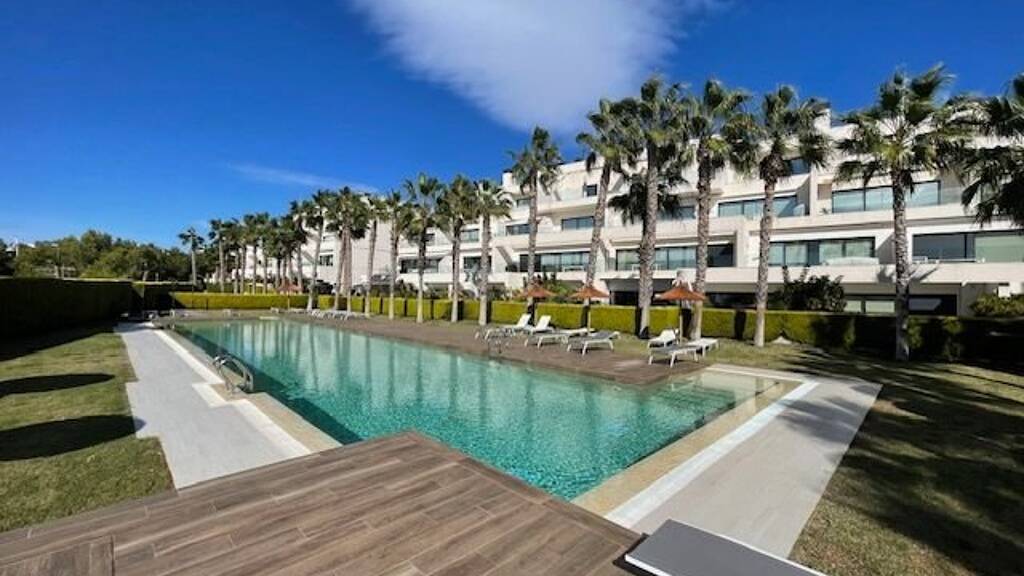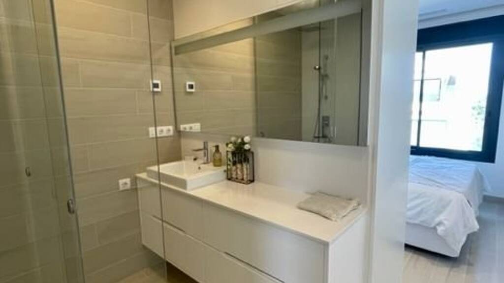 Diese Wohnung hat eine bebaute Fläche von ca. 76 m² und eine große offene Terrasse von 20 m2. Das Anwesen umfasst auch eine private Tiefgarage mit einem Garagenplatz und Abstellraum. Die Innenaufteilung besteht aus einem geräumigen offenen Wohn- und Essbereich mit voll ausgestatteter Küche, einem Hauptschlafzimmer mit eigenem Bad, einem weiteren Doppelschlafzimmer und einem separaten Gästebad. Die Verteilung und die großen Fenster sorgen für eine optimale Integration in die Umgebung und erleichtern das Leben im Freien. Diese exklusive Wohnung, die für den Genuss des mediterranen Klimas und der Landschaft geschaffen wurde, ist einzigartig in der Wohnanlage, sowohl durch ihr avantgardistisches Design als auch durch ihren hohen Qualitätsstandard.