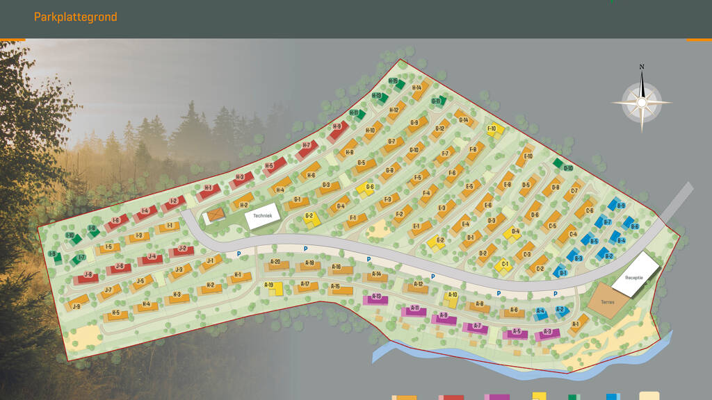 Het vakantiehuis ligt op een perceel van 193 m². Er is een centrale ontvangst waar gasten worden verwelkomd en waar men 's ochtends verse broodjes kan halen. In dit ontvangstgebied is ook een mooie speeltuin en een toegang tot de Vossmecke-beek, waar kinderen in het kristalheldere water kunnen spelen.
