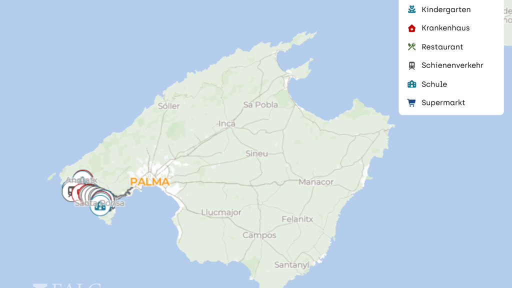 Auch die Anreise ist komfortabel. Der Flughafen Palma de Mallorca ist je nach Verkehr in etwa 30 Minuten mit dem Auto erreichbar. Damit eignet sich die Lage sowohl für den dauerhaften Lebensmittelpunkt als auch als Zweitwohnsitz mit guter Erreichbarkeit.