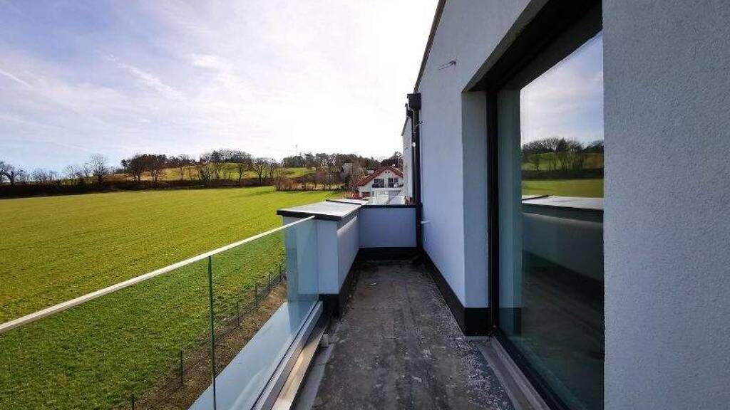 Dieses Gebäude unterteilt sich in 3 Etagen wie folgt: EG Hier befinden sich neben dem Vorraum und einem Abstellraum auch ein Gäste WC. Die sehr großzügigen Wohnküche mit ca. 44m² bietet mehr als ausreichend Platz für eine Küche mit Kochinsel, einem ansehnlichen Essbereich als auch einem hellen Wohnbereich. Von diesem Raum geht auch ein weiterer Raum ab, welcher durchaus als Büro oder weiteres Schlafzimmer genutzt werden könnte. Vom Wohnbereich gelangt man auf die ca. 20m² große Terrasse mit traumhaften Fernblick. OG Über die geschwungene, massive, zum Wohnraum hin offeneTreppe gelangt man in den Schlafbereich des Hauses. Hier befinden sich neben dem Flur 3 Schlafzimmer, einem separaten WC auch ein großes Bad. DG Das Dachgeschoss ist mit seinen ca 28m² ist ein einziger Raum welcher als Schlafzimmer genutzt werden kann, oder aber auch als Atelier. Das Dachgeschoss umgibt eine offene Terrasse mit mehr als 26m². Die Terrasse ist zum teil mit einem gemauerten Geländer begrenzt, ein Großteil des Geländers besteht aber auch aus Glas um auch beim Sitzen die Aussicht genießen zu können. Dieses Geschoss beinhaltet aber auch ein Bad mit WC und Dusche, was diesen Raum unabhängig macht.