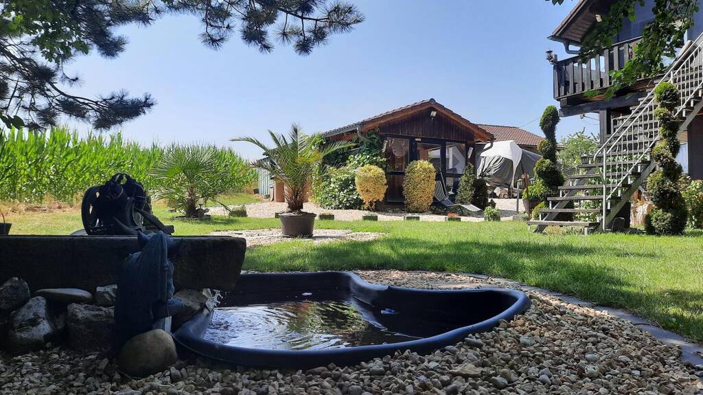 Neben dem Haus befinden sich zwei Fertiggaragen mit Satteldach, eine Hobbywerkstatt, ein großes Gartenhaus und eine großzügige Terrasse. Das Grundstück mit ca. 3.083 qm ist ums Haus gärtnerisch ansprechend gestaltet, die restliche Fläche besteht aus einer leicht abfallenden Wiese und einem neben dem Haus befindlichen baumbestandenen Teil. Hier gibt es jede Menge Entfaltungsmöglichkeiten Tier- bzw. Pferdehaltung wäre ebenfalls denkbar. Das Haus verfügt derzeit über einen eigenen Brunnen, die Fernwasserleitung liegt jedoch bereits im Haus. Ferner ist eine 3-Kammer-Klärgrube mit biologischer Klärung vorhanden, und ein eigener Flüssiggastank steht neben dem Haus. Eine Übernahme ist nach Absprache möglich!