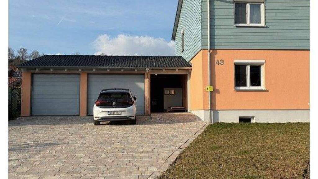 1 Pkw-Garage (mit verschiedenen Stromanschlüssen, auch für E-Autos) mit elektrischem Torantrieb und ein Pkw- Stellplatz im Freien
