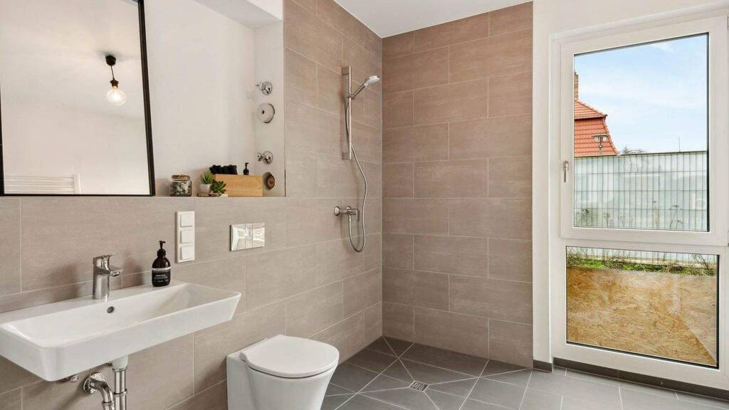 Das wunderschöne Wohnquartier WILDAUFGRÜN umfasst 18 Stadtvillen mit insgesamt 166 Wohnungen und wurde im Jahr 2024 gebaut. Die voll unterkellerten Wohnhäuser sind in dreigeschossiger Massivbauweise errichtet, deren Dachgeschoss als Staffelgeschoss konzipiert ist und auf diese Weise großzügig Platz für umlaufende Dachterrassen bietet. Die Dächer selbst werden extensiv begrünt. Neben Anforderungen an ein KfW-Effizienzhaus 55 (GEG) erfüllen die Gebäude auch die Vorschriften des erhöhten Schallschutzes, die Kriterien der aktuell gültigen EnEV und verfügen über eine effiziente Be- und Entlüftungstechnik. In den Untergeschossen befinden sich Technik- u. Hausanschlussräume sowie Abstellräume für Fahrräder, Kinderwagen und Rollatoren. Auch die Mieterkeller liegen in den Untergeschossen. Die ebenfalls wohnungsweise zugewiesenen Pkw-Stellplätze befinden sich im Außenbereich. Alle umgebenden Grünflächen folgen einem landschaftsplanerischen Konzept. Neben dem innenliegenden Quartiersplatz und einem großzügigen Spielbereich finden sich gemeinschaftlich genutzte Rasenflächen, eine Wildblumenwiese und zahlreiche Blühstreifen, die als Linden- und Rosengärten gestaltet sind. Neuanpflanzungen von Gehölzen, Hecken und Bäumen sorgen für Struktur und schattige Ruhezonen.